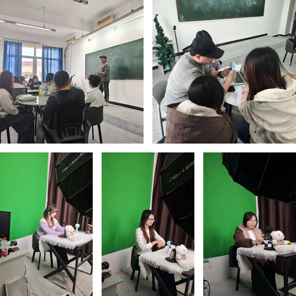 理论授课结束后,活动进入沉浸式实战演练环节。同学们以小组为单位,开展直播全流程实操训练,各小组自主完成脚本策划、主播与中控人员推选,并依托抖音平台真实账号进行直播带货与后台中控操作实践。从镜头前的直播互动、节奏把控,到幕后的数据监测、流程配合,大家分工明确、通力协作,将理论知识切实转化为实操能力,现场氛围活跃有序。参与同学纷纷表示,此次沉浸式体验不仅加深了对行业运营工具与工作模式的理解,更深刻体会到团队协作与临场应变在实际工作中的重要意义。