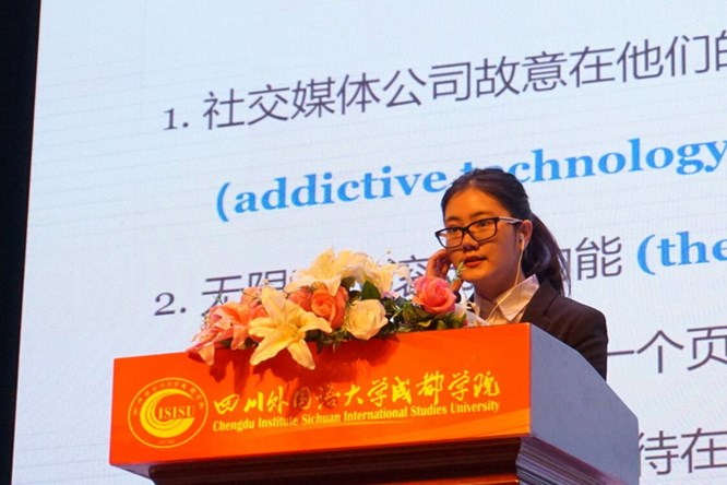 本次大赛分为“主旨口译”和“交替传译”两个环节。首轮比赛中,所设题目紧随时潮,关注热点,契合生活;各位选手凭借扎实的知识储备,依凭稳健的识记能力,展现出非凡的口译技巧,好评不断,喝彩连连。在第一轮的激烈竞争后,我院3号选手付琨,5号选手刘晨晨,7号选手陈韵及其他学院三名选手力克群雄,成功晋级第二轮比赛。第二轮比赛开始前,刘景旭老师对选手们第一轮的表现进行了点评,并鼓励参赛选手再接再厉。接下来的现场互动表演中,我院2017级6班宋佳悦同学一展歌喉,以一首惊艳的曲目叫绝四座。