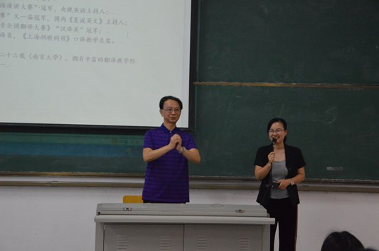 4月25日下午,来自南京大学外国语学院的曹建新教授主讲的题为《打开“口译”心锁》讲座在第二教学楼阶梯教室六举行。讲座由我院院长乐大艳教授主持,部分专业课教师和学生代表到场聆听,会场座无虚席。