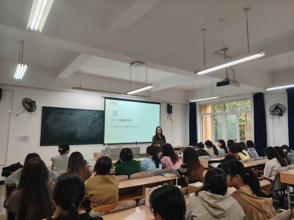 为进一步提升我院ACCA创新人才实验班全体学生的行业认知,树立职业目标,5月10日上午,我院在第一教学楼B414室举办ACCA创新人才实验班会员分享讲座,楷柏财经联合ACCA成都代表处,邀请了ACCA资深会员周莉菲老师,为我院全体ACCA创新人才实验班的同学们做了一场精彩的分享讲座。