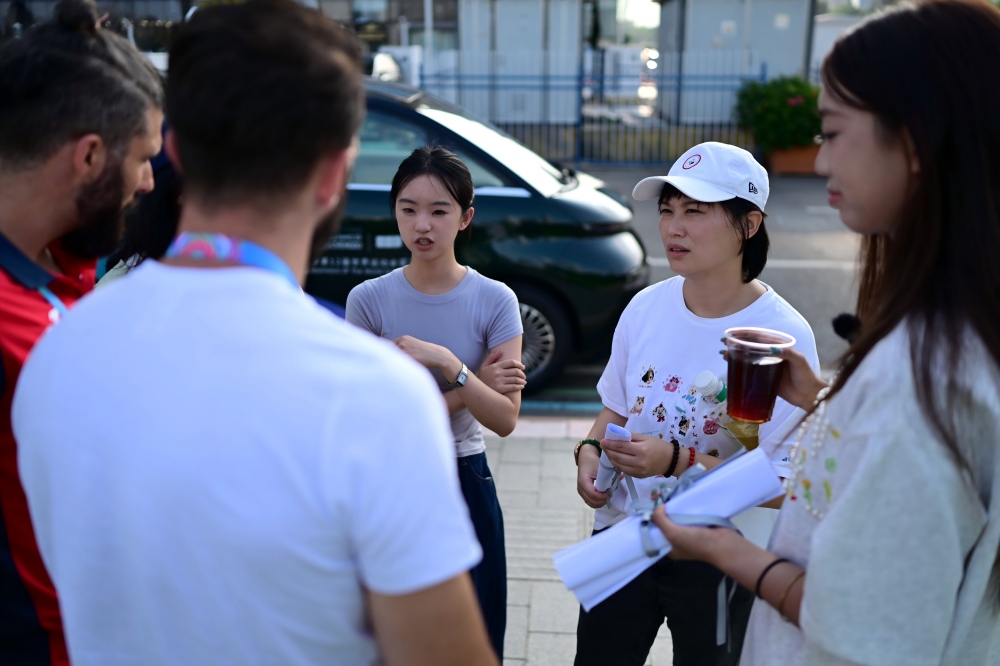 在4天的采访和拍摄项目中,林文洁在世运村和四川广播电视台开展的翻译工作,并以口笔译能力为桥梁,高效完成三项核心任务:国际采访全流程支持:作为口译人员,林文洁全程跟进海采拍摄环节。她精准翻译主持人的采访问题,实时传递外籍运动员在蓉体验和品牌体验类问题的第一手反馈。同时根据记者需求,引导十余位运动员配合完成视频拍摄与定点取景,确保素材符合拍摄要求和素材的丰富性。双语字幕精准把关:针对本次产出的三条相关视频,林文洁承担核心字幕工作:独立完成海采视频、宣传视频的英文语言内容翻译,并主导校对全部视频的中英双语字幕。通过相关关键信息的反复确认、语境化表达调整,林文洁将英文评价转化为中文相应正面的积极评论,并将方言特色语言译为英文,保障视频字幕在翻译后依旧带有宣传目的和语言趣味性。拍摄现场即时口译:在宣传视频拍摄现场,林文洁同步担任导演组口译支持。她同步传达导演的拍摄脚本内容并根据拍摄进程实时翻译脚本指令,协助四川电视台拍摄团队执行拍摄计划,为高效完成视频拍摄消除语言沟通壁垒。