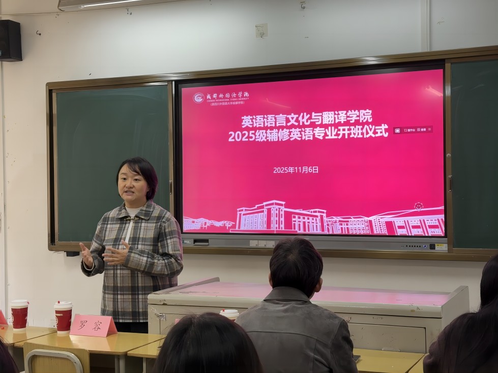 为欢迎和鼓励2025级辅修英语专业新生,11月6日,我院在第一教学区B318教室成功举办2025级辅修开班仪式。学院院长王健媛、副院长江杰,专业课教师代表苏小燕及全体2025级辅修英语专业学员齐聚现场,开班仪式由专业课教师黄梦倩主持。