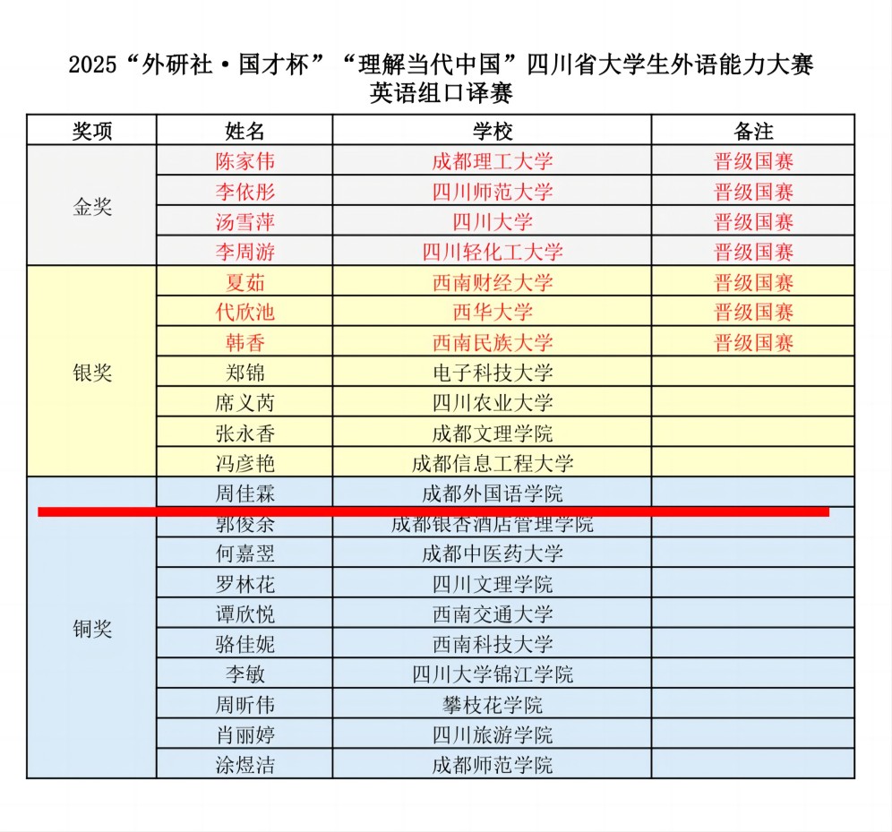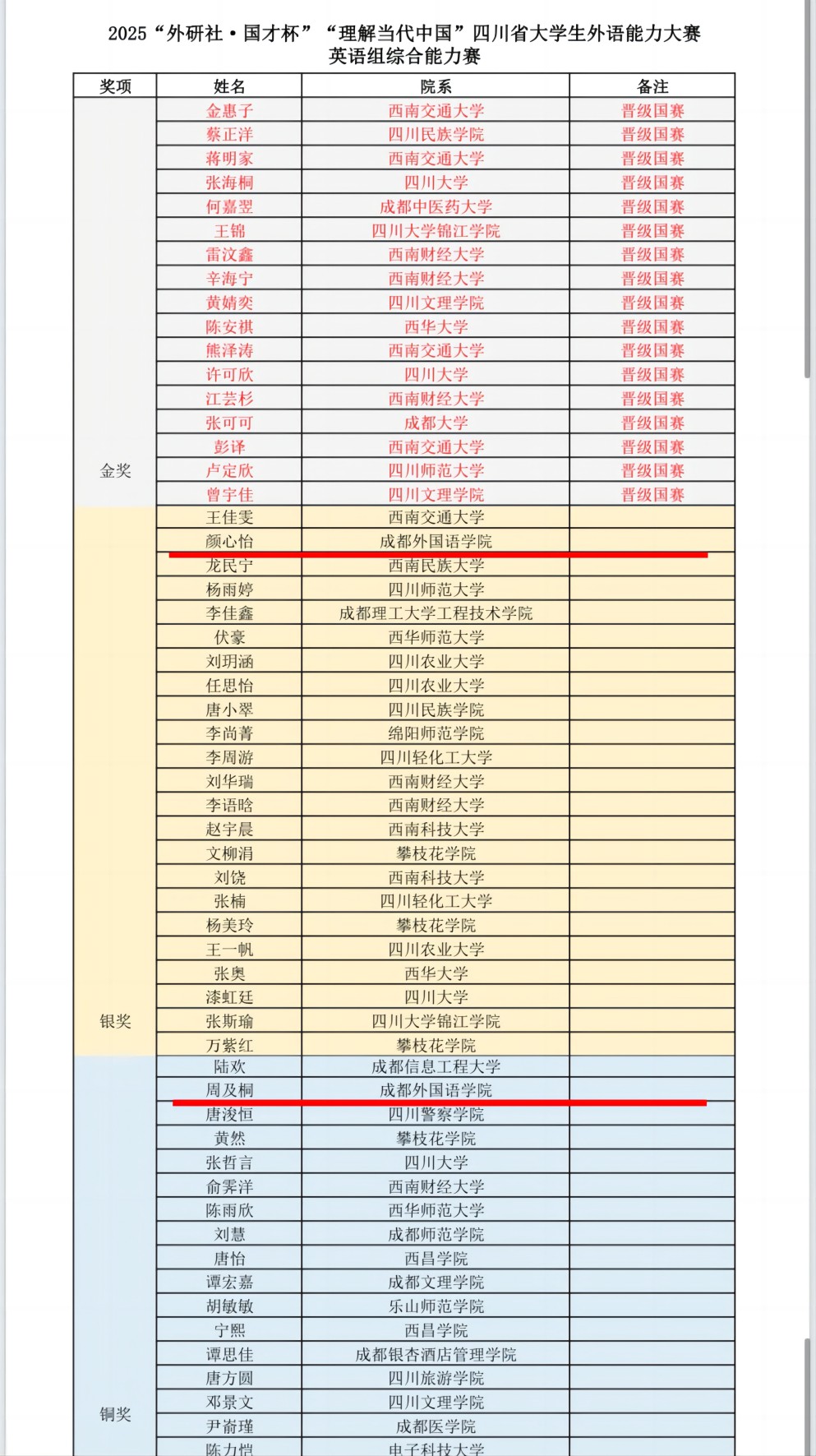 我院学子在2025 “外研社·国才杯” “理解当代中国” 四川省大学生外语能力大赛英语组比赛中斩获佳绩
