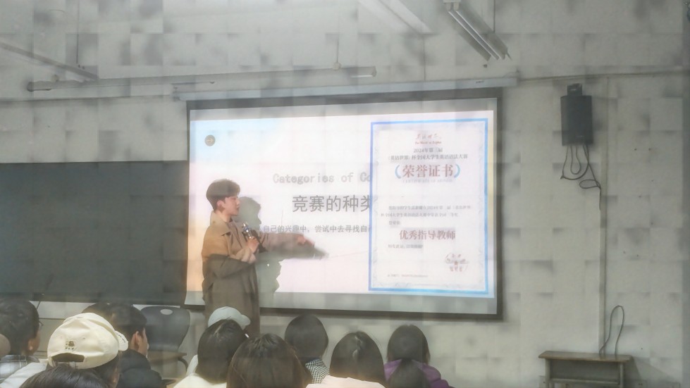 随后,获得了2025年“外研社.国才杯”“理解当代中国”外语能力大赛综合能力赛项四川省银奖以及2025年全国大学生英语竞赛四川赛区决赛特等奖的2024级英语师范4班的颜心怡同学为现场的学弟学妹们分享了自己的备赛经历及获奖经验。她清晰和生动的分享了如何通过比赛促进自己的专业课学习,备赛寻求专业指导的重要性以及在压力下保持冷静的必要性。颜心怡同学的经历不仅激励了在场的同学,也为大家提供了具体的参赛攻略。这不仅为大一学生提供了灵感,也让他们对竞赛的水平有了更直观的认识。