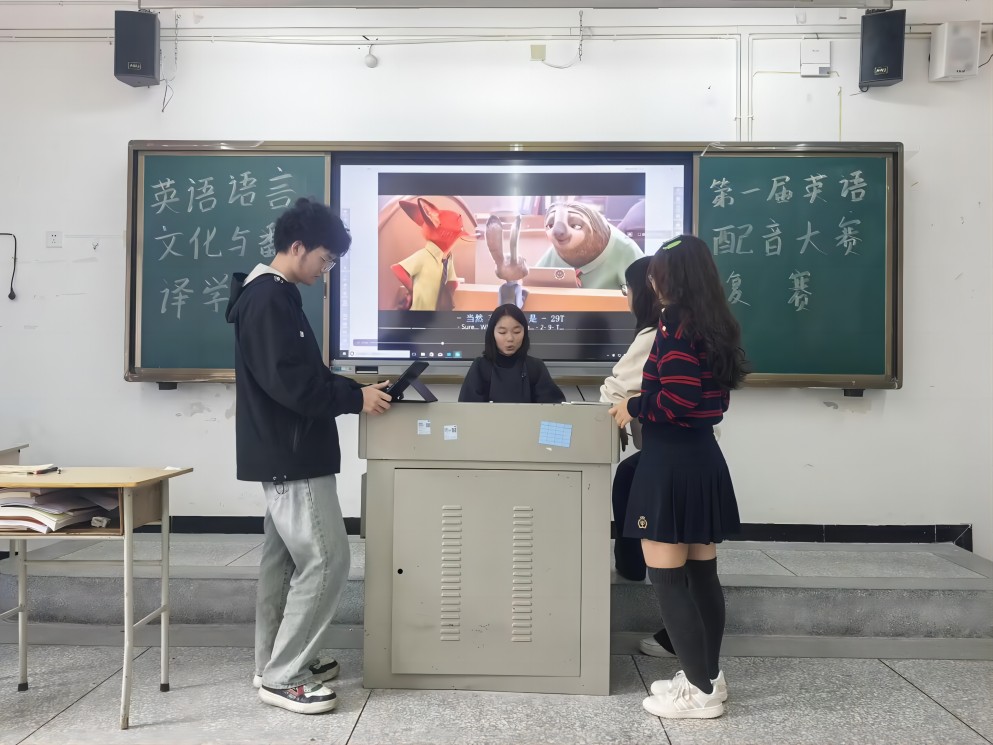 赛程推进井然有序,班级初选与年级决赛均采用现场配音形式,确保比赛的公平性与观赏性。班级初选阶段,各参赛队伍依次登台展示,全班同学化身 “大众评委”,围绕语音语调自然准确度、情感表达感染力、音画同步契合度、创意表现独特性四大维度,对各队伍综合表现进行投票,最终每班评选出 1 组最优队伍晋级年级决赛。进入年级决赛环节,比赛规格与评审标准进一步升级:由 6 名专业课教师组成专业评委团,沿用相同评分维度对 19 支决赛队伍的现场表现进行严谨打分。决赛现场竞争激烈,各队伍凭借扎实的英语功底与出色的舞台表现展开精彩角逐,最终 5 组得分最高的队伍成功斩获晋级校级决赛的资格。